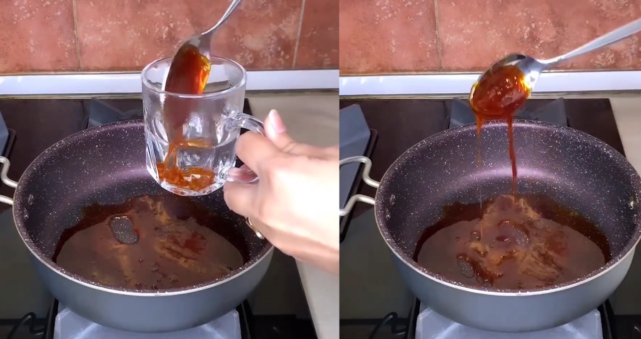 2. آب جوش روی آن بریزید و هم بزنید تا کاملاً حل شود.