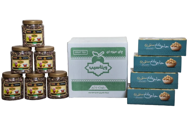 پکیج شامل:شش عدد چای میوه ای درجه یک ویتاسیب به همراه چهار عدد حاجی بادام درجه یک ویتاسیب